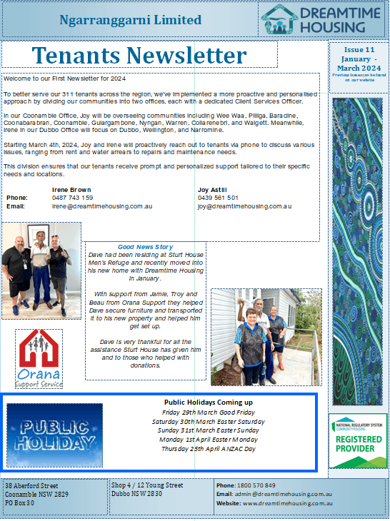 General Enquiries: admin@dreamtimehousing.com.au